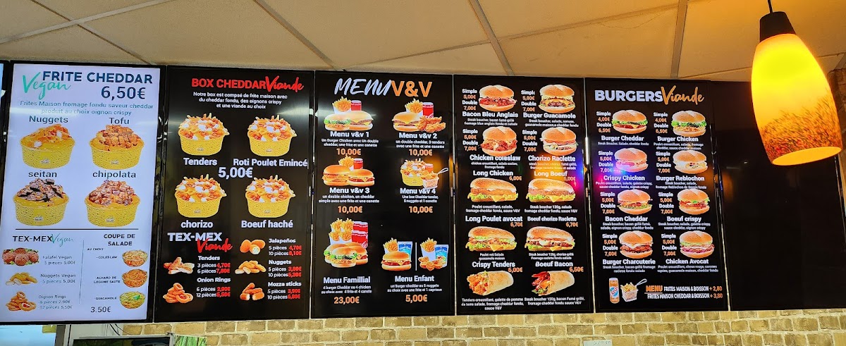The menu at V&V House features a variety of fast food options with a strong focus on vegan and vegetarian dishes. It includes a range of plant-based burgers, wraps, and bowls designed for quick and casual meals. Notable offerings include vegan wraps, crispy vegan burgers, falafel wraps, and vegan poke bowls, alongside some poultry options like the Double Chicken.